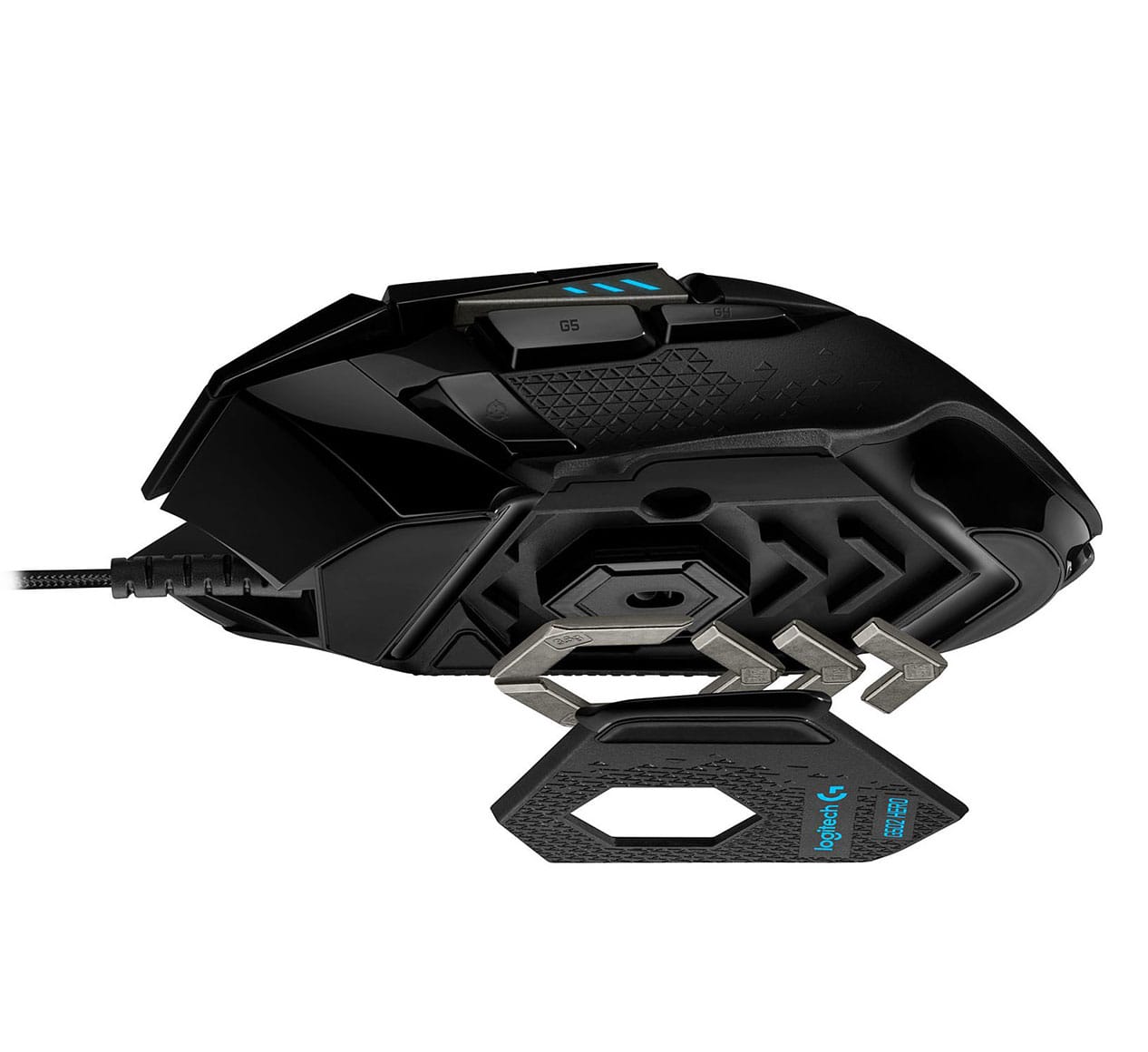 La Logitech G502 Hero dispose de cinq poids de 3.6g afin de la personnaliser à votre convenance. Utilisez-les selon le poids que vous souhaitez ajouter ou enlever dans chaque position. Cette souris peut s’adapter exactement à votre convenance.